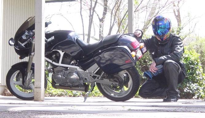 The Buell and I back from a ride to Severy in April of 2004